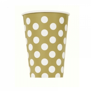 Copos Dourados Bolinhas Brancas