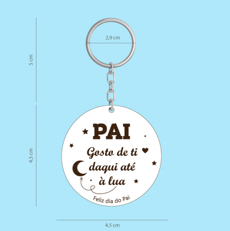 Ideal para colocar nas chaves de casa, do carro ou do trabalho, é um presente especial que recorda, a cada momento, o quanto ele é importante.