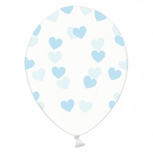Unidade Balão Latex Transparente Corações Azuis
