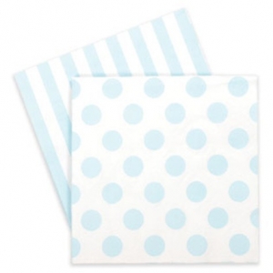 Guardanapos Pequenos Bolas/Riscas Azul Claro