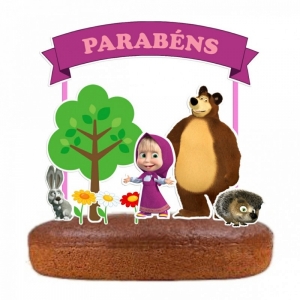 Topo de Bolo Papel Masha e o Urso
