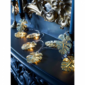 Grinalda de Luzes Folhas Douradas